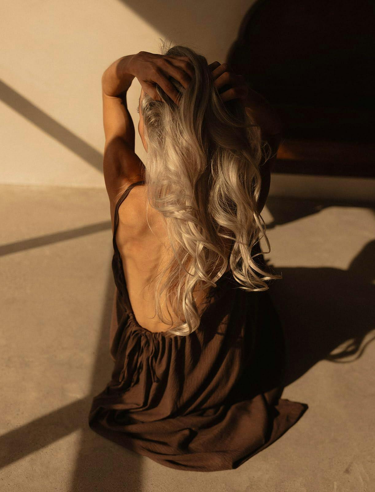 The Backless Maxi Cami Dress was made for women who want to feel feminine and comfortable at home without living in old t-shirts and leggings. The relaxed silhouette skims the body instead of hugging it, while the adjustable straps and tie-back design allow you to decide how open or secure the back feels.